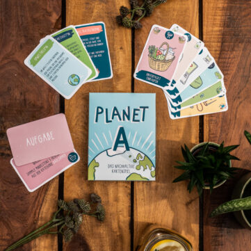Mit Planet A – dem nachhaltigem Kartenspiel könnt ihr auf über 100 wunderschön illustrierten Karten und mit einer witzigen Spielidee viele Ideen für eine grüne Zukunft kennenlernen.